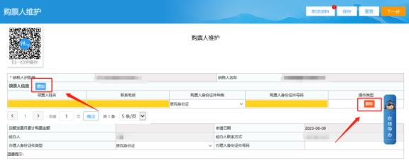 三、領(lǐng)購人維護頁面,進入操作界面后,若要新增人員直接在此處點擊增加;若要刪除,可以在相關(guān)人員信息后方點擊【刪除】。