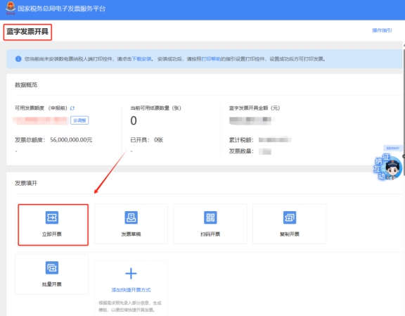 答、您好,請您打開電子稅務(wù)局網(wǎng)頁后點擊登錄頁面右上角“新版登錄”,然后選擇“企業(yè)業(yè)務(wù)”登錄進來后依次點擊:【我要辦稅】一【開票業(yè)務(wù)】一【藍(lán)字發(fā)票開具】一【立即開票】進入發(fā)票填開頁面輸入購銷方信息及開票信息,信息都填寫無誤后點擊頁面下方“發(fā)票開具”即可開票成功。