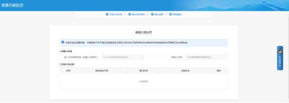 三、簡易行政處罰菜單進(jìn)入點(diǎn)擊操作下面的受理按鈕查看違法行為記錄。確認(rèn)違法事實(shí)后填寫經(jīng)辦人姓名點(diǎn)擊右上角的確認(rèn)。