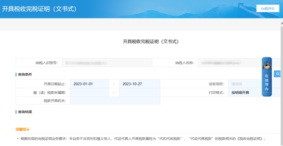 注:【開具稅收完稅證明(文書式)】沒有開具次數(shù)限制。