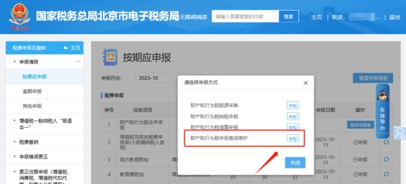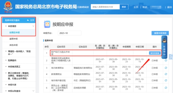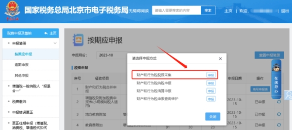 二、稅費申報及繳納—按期應(yīng)申報—財產(chǎn)和行為稅合并申報。