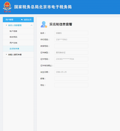 9.? 納稅人關(guān)聯(lián)成功后,可進行實名制信息的查看。