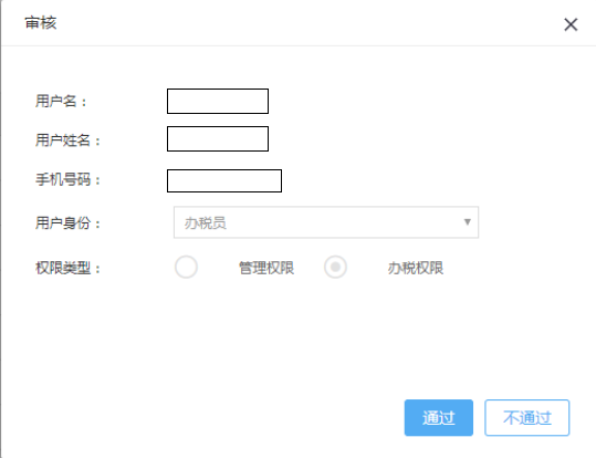 4)? 企業(yè)納稅人選擇關(guān)聯(lián)后的用戶名,點擊“審核”按鈕。