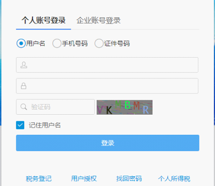 4.? 納稅人選擇個人賬號登錄-用戶名登錄方式,輸入用戶名密碼,點擊“登錄”按鈕,進入實名申請頁面。