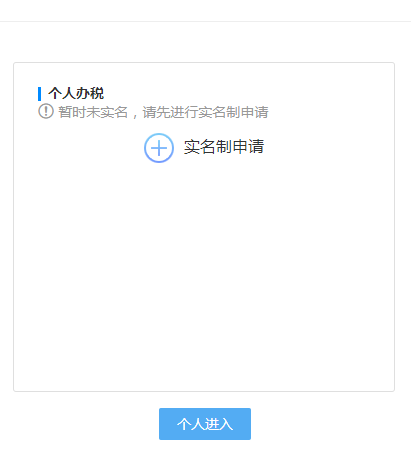 5.? 納稅人進入實名申請界面,首先進行個人辦稅實名申請,點擊“個人進入或?qū)嵜粕暾垺卑粹o。