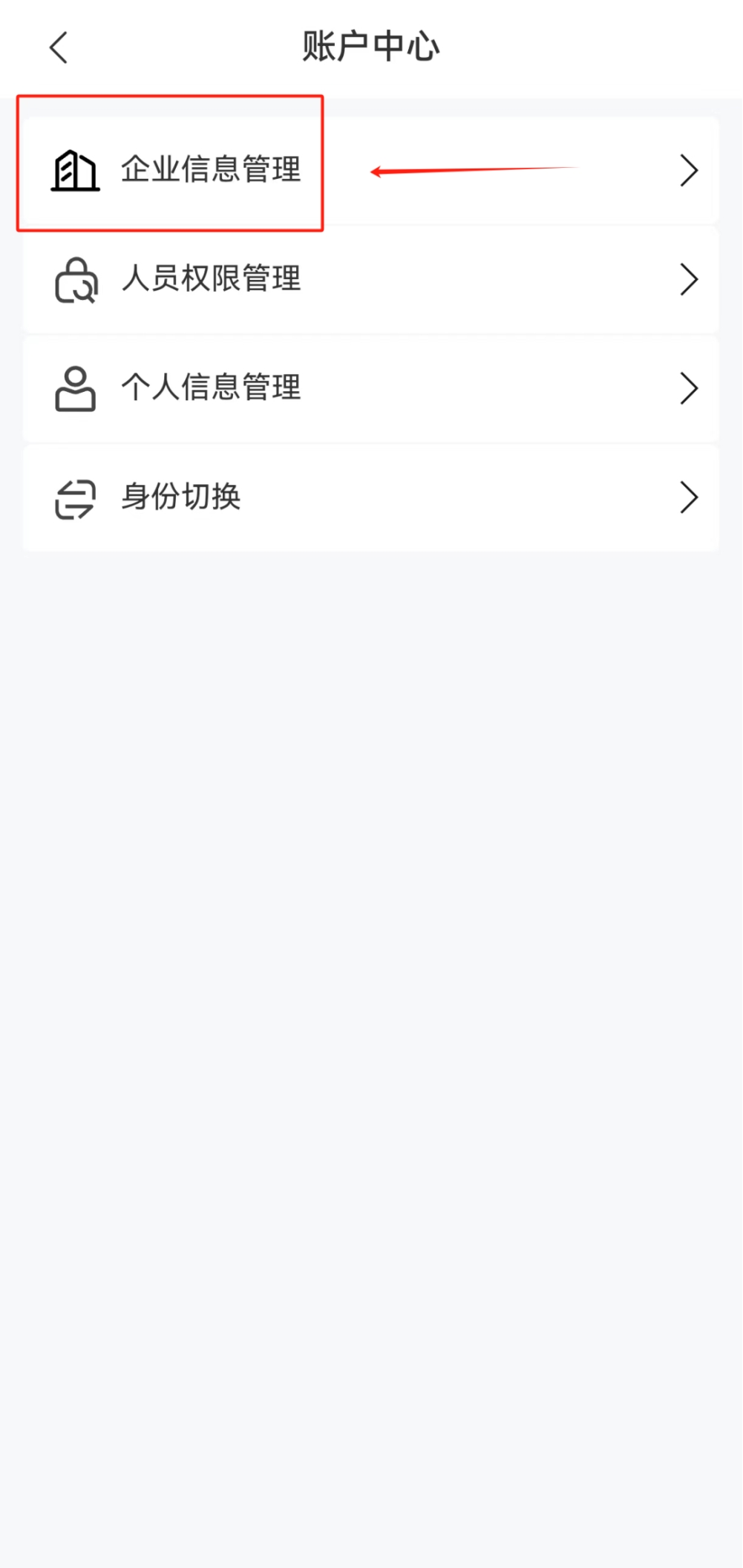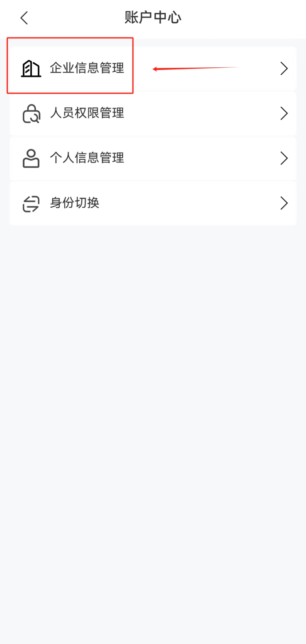 用戶以企業(yè)身份登錄或切換企業(yè)身份(如何切換身份請(qǐng)見下文身份切換),可通過【賬戶中心】進(jìn)行企業(yè)信息管理。