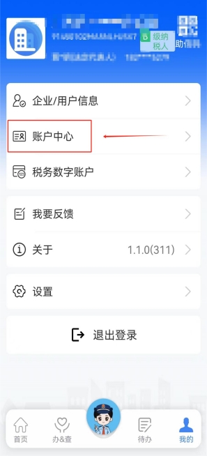 新電子稅局APP  人員信息管理操作指引  1.賬戶中心  用戶登錄成功后,可以通過【賬戶中心】進(jìn)行企業(yè)信息管理、人員權(quán)限管理、人員權(quán)限查看、人員信息管理、身份切換等?! ?.企業(yè)信息管理  用戶以企業(yè)身份登錄或切換企業(yè)身份(如何切換身份請(qǐng)見下文..