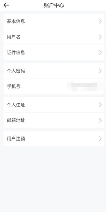 用戶進(jìn)入個(gè)人賬戶中心可以查看維護(hù)個(gè)人信息,包括證件信息維護(hù)、個(gè)人密碼維護(hù)、手機(jī)號(hào)維護(hù)、個(gè)人住址維護(hù)、郵箱地址維護(hù)、用戶注銷。