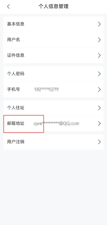 進(jìn)入賬戶中心頁(yè)面后,點(diǎn)擊選擇“郵箱地址”打開郵箱地址維護(hù)頁(yè)面,錄入修改后的郵箱地址,點(diǎn)擊獲取驗(yàn)證碼,輸入驗(yàn)證碼后即可完成郵箱地址修改。