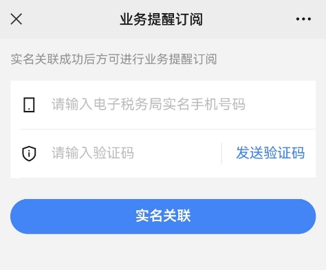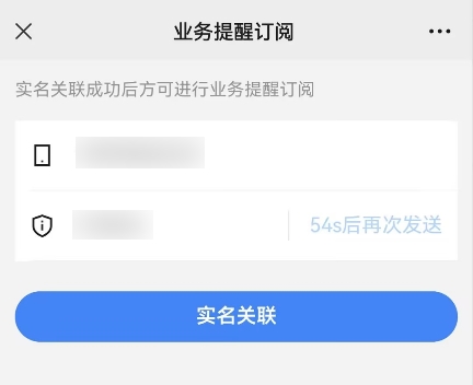 4.用戶輸入手機號、獲取并輸入驗證碼后點擊“實名關(guān)聯(lián)”,若關(guān)聯(lián)成功,跳轉(zhuǎn)回“業(yè)務(wù)提醒訂閱”界面。