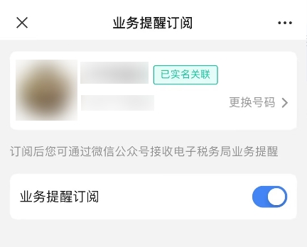 5.當完成實名關(guān)聯(lián)后,默認開啟業(yè)務(wù)提醒訂閱(可手動關(guān)閉);并且可以通過微信公眾號接收到消息推送。