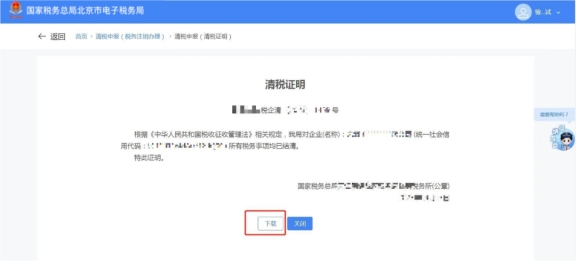 3)系統(tǒng)跳轉(zhuǎn)至清稅證明界面,點(diǎn)擊【下載】進(jìn)行清稅證明下載。