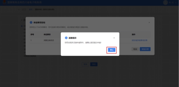 2)符合即辦注銷資格及條件,但存在未辦結(jié)事項(xiàng),且未辦結(jié)事項(xiàng)都為提示類事項(xiàng)時(shí)。