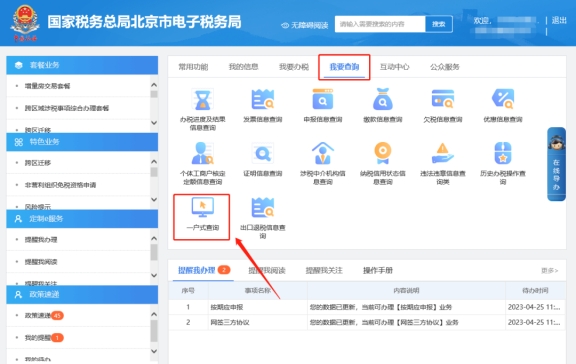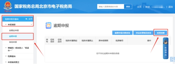 (1)請您選擇【我要查詢】—【一戶式查詢】—【申報信息查詢】—【逾期未申報信息查詢】調整查詢條件查看;