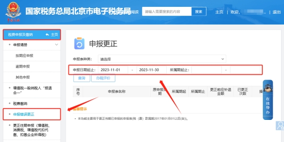 二、稅費申報及繳納—申報錯誤更正,修改申報月份,點擊更正財報即可。