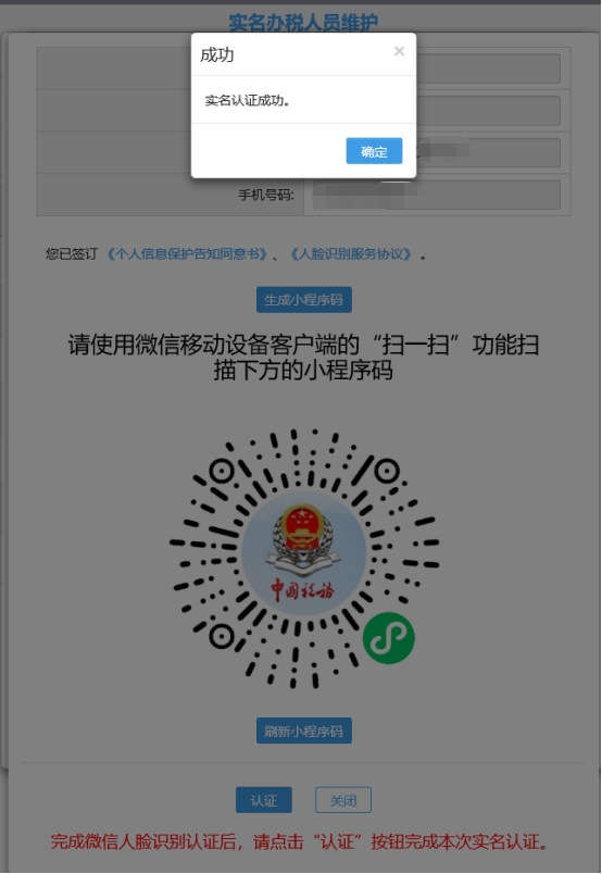 十、人臉識別頁面(掃描二維碼)完成后點(diǎn)擊“認(rèn)證”。