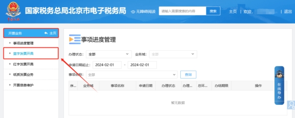 1.請依次點擊【我要辦稅】—【開票業(yè)務(wù)】—【藍字發(fā)票開具】—【立即開票】進入開票界面,在“項目名稱”處輸入信息,系統(tǒng)通過智能匹配提供相似選項供選擇。